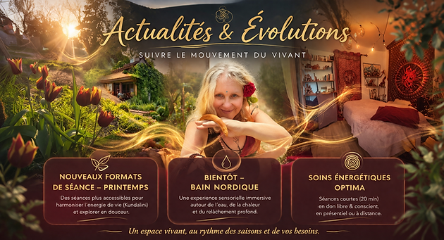 Un espace pour prendre soin de vous, vous déposer, vous ressourcer... vous régénérer en profondeur au cœur m'aime de chacune de vos cellules.